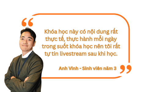 Có. Chương trình thiết kế cho người mới: bắt đầu từ tư duy kịch bản, bố cục khung hình, ánh sáng–âm thanh, đến luyện giọng, ngôn ngữ cơ thể và xử lý tình huống. Học viên được thực hành theo mẫu (script, checklist, template) và được giảng viên góp ý trực tiếp để vượt qua nỗi sợ camera, nói mạch lạc, giữ chân người xem và dẫn dắt tới hành vi mua hàng.
