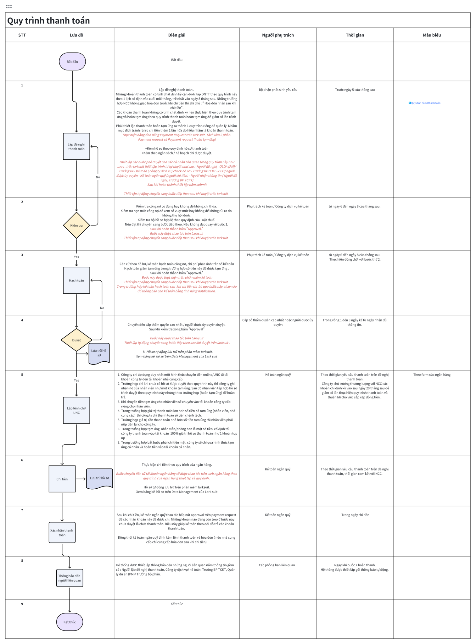 FORM MẪU QUY TRÌNH THANH TOÁN